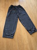 かすりのパッチワークが とっても丁寧で 美しく 色とりどりの生地も素敵にコラボ! 刺し子も 綺麗なラインで 美しい。 生地を 惜しげなく贅沢に使って 普通のパンツだと 2枚は 十分取れそう。 ワンピースにすれば とっても素敵になりそう。 プチプレゼントも 可愛い。