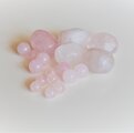 可愛らしいミルキーピンク色のローズクォーツは、白い石英がアルミニウムや酸化チタンなどの結晶を含んで、綺麗なピンク色になった石です。