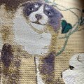 本作品の絵は、山口素絢(やまぐち そけん/1759-1818年)による『朝顔狗子図』です。素絢は応挙の弟子で、美人画を得意としました。当時弟子たちは「応挙風」の絵を求める人々のためにも作品を描いており、人気のあった応挙の子犬の絵を忠実に倣った一作です。※織柄解説は下記参照