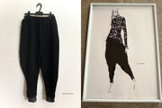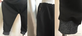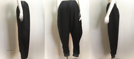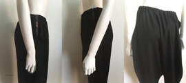 黒の尾州ウールを使用し、サイズを大きくウエストゴムで絞り、