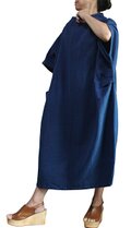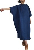 ジョムトン手織り綿ハイネックゆったりインディゴ染めドレス(DFS-082-03)