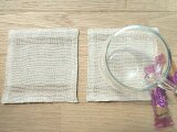 経糸を麻糸(リネン)、緯糸を木綿糸で手織りした生地でコースターを作りました。