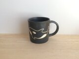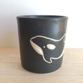シャチの部分は白と黒の釉薬で掛け分け、輪郭部分は無釉です。