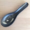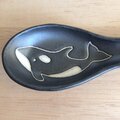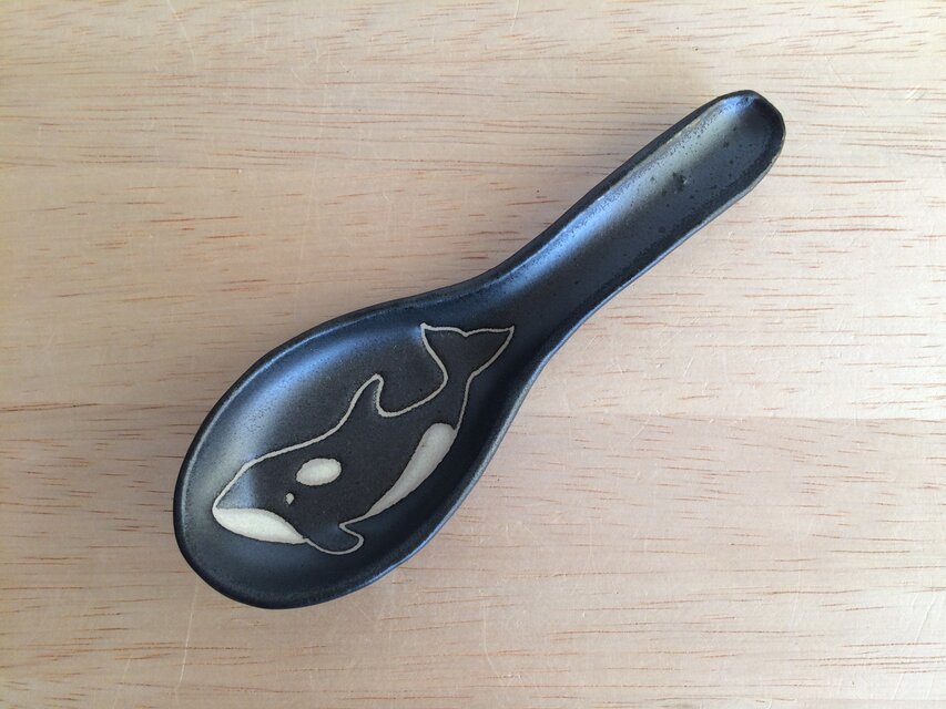 シャチの輪郭部分は無釉で全体に黒マット釉を施しています。