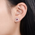 ユニークなひまわりピアス 7月の誕生石 レッドルビースタッドピアス ソリティアピアス 母の日ジュエリーギフト