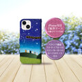 月夜の下でにゃんこ達が勢ぞろい。銀河鉄道バージョンのiPhone専用 手帳型スマホケース【内側色:ホワイト仕様】です。