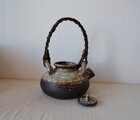 大きな大きな急須です。ごつごつとした肌合いに蔓の取手が良い風合いです。