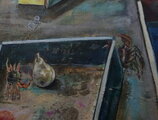 「額装の場合、作品と額が数ミリ接続する部分があります。長い間、額と作品とが触れたままになる部分は絵の具に使われる溶剤が完全に乾燥していても、湿度や温度などの様々な要因で作品の一部が額と接着することがあります。それを防ぐために作品完成後必要と判断した場合は、作品の周囲3mm程度を極軽く削ることで…