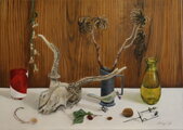 骨がモチーフにされる理由は確かな記憶はないけれど、ヴァニタス(日本語では虚無や空虚さの意味)を表する場合もあるし、他にも、画中のアクセントとしてであったり、あるいは骨と言う非日常的なものを組み合わせることで起こる意識改変的な役割、自然や物や時間や季節などの比較や対比の対象として、さらに比喩とした生と死、現実と非現実、時間と記憶、過去と未来など、骨はある意味で作品を本題に導くナヴィゲーターとしての案内役を持っている。