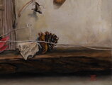 「額装の場合、作品と額が数ミリ接続する部分があります。長い間、額と作品とが触れたままになる部分は絵の具に使われる溶剤が完全に乾燥していても、湿度や温度などの様々な要因で作品の一部が額と接着することがあります。それを防ぐために作品完成後必要と判断した場合は、作品の周囲3mm程度を極軽く削ることで…