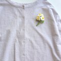 ブローチが下を向いてしまう場合は、服の内側にフェルトを入れ、フェルトとブローチでお洋服を挟むようにして留めて頂くと、見栄えがよくなります。
