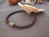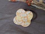 茶色い小さな土の玉を、手の中で立体的な花の形に作り上げた、一点もののアクセサリーになります。