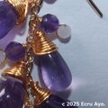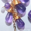 その間を散らすように、アメジストのラウンドカットの先に、ホワイトジェードとブルーレースを同じワイヤーに通したパーツをお作りし、此方もバランスを見て下げました
