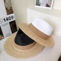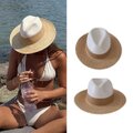 ラフィアハット、ツバ広麦わら帽子、英国風、夏用、ストローハット、飾り ミディアムブリム 日よけ・UV対策