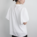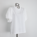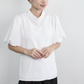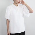上品な光沢感+シワになりにくい ショートスリーブ バルーン袖 ブラウス ホワイト 0654WH