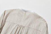 年中着回し可能 ストライプワンピース コットンリネン チュニック 薄い茶色*オフホワイト 250417-1