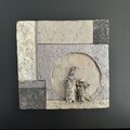 雛がついた幾何学模様の陶板と
