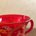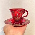 アンティーク 希少なルビー色ヴェネチアンガラス カップ&ソーサー ハンドペイント 高7.3㎝【YG46】