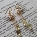 レモンクォーツとホワイトコーラルの揺れるピアスです。