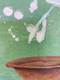 「額装の場合、作品と額が数ミリ接続する部分があります。長い間、額と作品とが触れたままになる部分は絵の具に使われる溶剤が完全に乾燥していても、湿度や温度などの様々な要因で作品の一部が額と接着することがあります。それを防ぐために作品完成後必要と判断した場合は、作品の周囲3mm程度を極軽く削ることで…