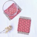北欧手織り:ローゼンゴン織りコースター(small flowers)ピンク×アズキ