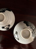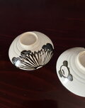 鉄釉(鉄分を含む釉薬)で半菊と花が描かれています。