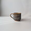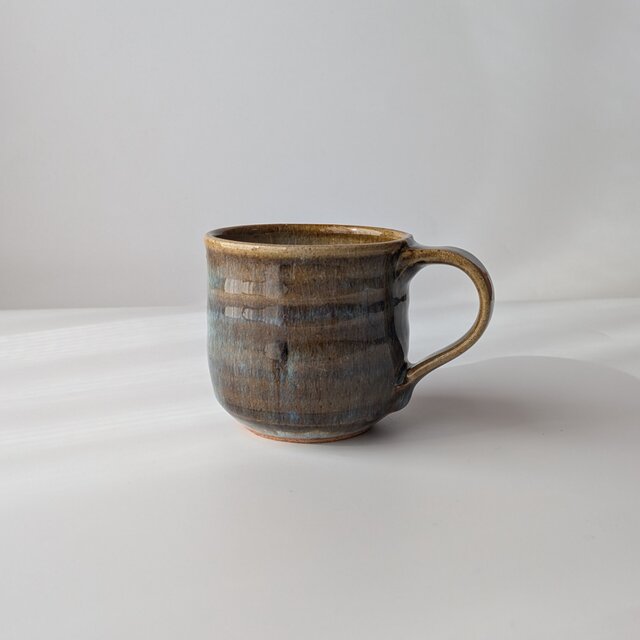 淡いブルーの釉薬の流れが美しいコーヒーカップです。