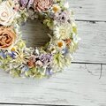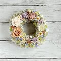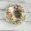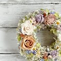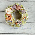 プリザーブドフラワーとドライフラワーで作られたこのリースは