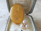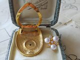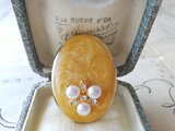 ヴィンテージ 取り外し可能・2Way はちみつ色/パール&Rhineストーンのスカーフクリップ