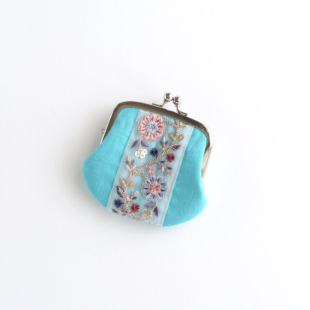 インド刺繍リボンをあしらった手のひらサイズのがま口ポーチ