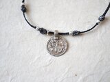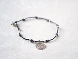 ブラックダイヤモンドとカレンシルバー、オールドアフガンチャームを合わせた編み紐ブレスレット