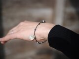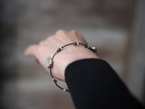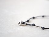 高級感のあるブラックダイヤを8粒、カレンシルバーの無垢ビーズと共に等間隔に散りばめ、アフガニスタンのオールドシルバーチャームをアクセントにエネルギッシュなコードブレスレットに仕立てました。