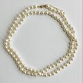 オールノットネックレスの特徴として、万が一糸が切れた場合でも最小限で抑えられる点や、玉同士が密着していないので擦れあいにくく傷も付きにくい点・又首回りにフィットしやすくなっている点等がございます。この仕様は特に海外で人気があり、比較的高品質アクセサリー類によくみられる仕様です。※弊社自社工場にて塗装したパールになります。品質の状態も維持されており、剥がれや大きな目立った傷などもございません。稀にピンホールや小さい凹み等が見られる場合がございますが、自社にて検品の上、品質に問題は無く許容範囲とさせて頂いております。