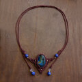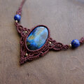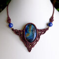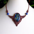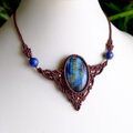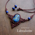 大きめラブラドライト(マダガスカル産)・ラピスラズリ マクラメ編みチョーカーネックレス 誕生日プレゼントギフト 3562
