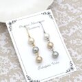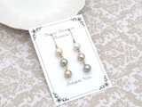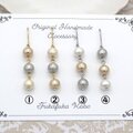 3粒のコットンパールのアンティークな色合いのピアス/イヤリングです。