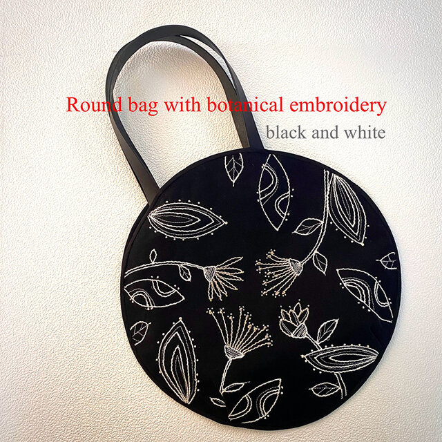 ※送料無料/クリーミー糸ボタニカル刺繍の丸いかばん