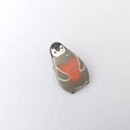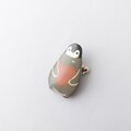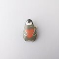 ハートを抱えた 皇帝ペンギンひなの漆ブローチ。