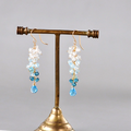 ブルートパーズ、アクアマリン、ホワイトトパーズを繊細にあしらい、ブルーの美しいグラデーションで仕上げたロングピアスです。