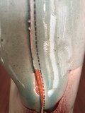 この花瓶は、陶器製の柔らかな質感が際立つ、表情豊かなデザインが魅力の一品です。外側の赤緑のグラデーションが空間に温かみを与え、内側に描かれたインディゴブルーの花柄デザインが一層お洒落さを引き立てます。様々な角度から見ることで、毎回新しい表情を楽しめるため、飾り方も無限に広がります。