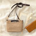ラフィア風 2way ミニショルダーバッグ・W(TCフルステッチ・クロススッテッチ・赤ギンガムチェック)