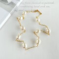 存在感ある大粒のライス型パールを、シンンプルな小豆チェーンで等間隔に繋いだ