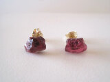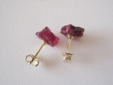 ピンクトルマリンの原石ピアス/ルベライト 14kgf
