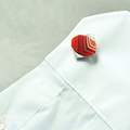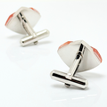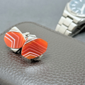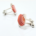 サードオニキスのレッドオレンジとホワイトの縞模様を活かしたスウィヴル式カフスボタン。