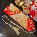 艶やかな朱に金の波と梅のような文様。