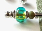 ビーズ穴付近に2箇所シルバーの金具が取り付けられており、透明の接着跡が透けて見えるのと、接着剤がビーズ表面に多少はみ出ている箇所が有ります、ご了承下さい。