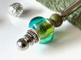 かんざし 青と黄色のグラデーションカラービーズ 水色 ブルー イエロー 緑 グリーン 一本挿し 一本簪 涼しげ
