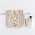 インド刺繍リボンをあしらったマチのある巾着ポーチ