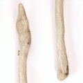 一方の先は 少し渦巻くような様子を見せて 膨らんで 先はとがり、もう一方も太く膨らんでいき 先はナナメに切れて丸まります。