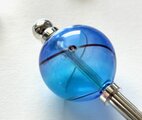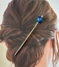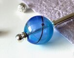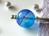 夏祭りのヨーヨーの様な水色と青の吹きガラスビーズでかんざしを作りました。