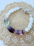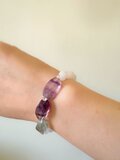 存在感あるツイストライスカットのマルチカラー・フローライト。透明感の奥には深みあるバイオレットカラーと淡い緑のカラーが綺麗に輝く